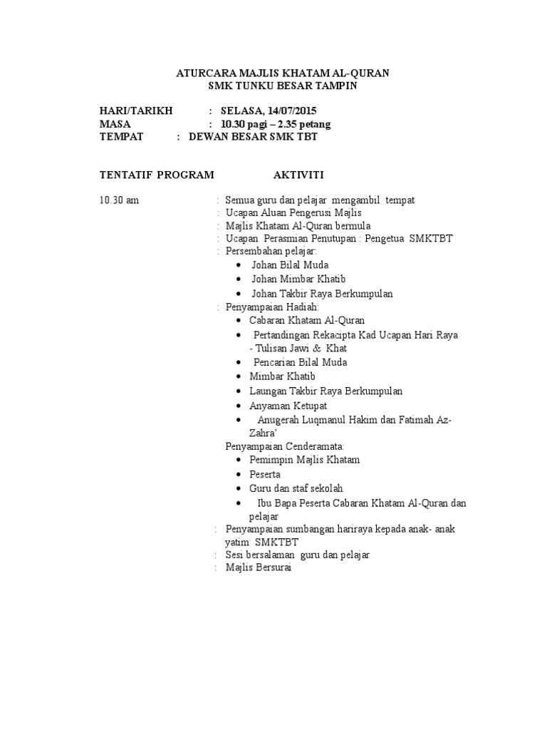 Aturcara Majlis Khatam 2015 Pdf