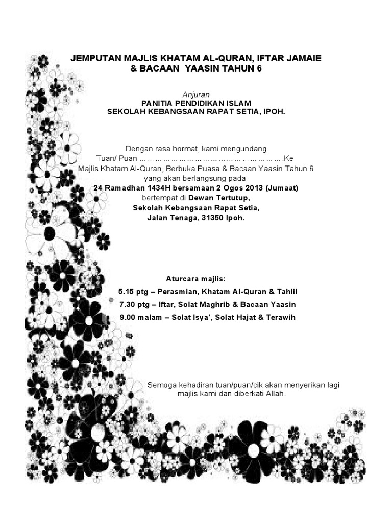 Jemputan Majlis Khatam Al Quran Pdf